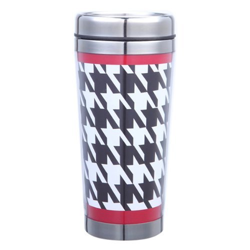 Stainless Steel Interior Travel Mug with Push Seal Lid and Slip Closure - 16 oz (Houndstooth)