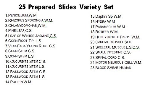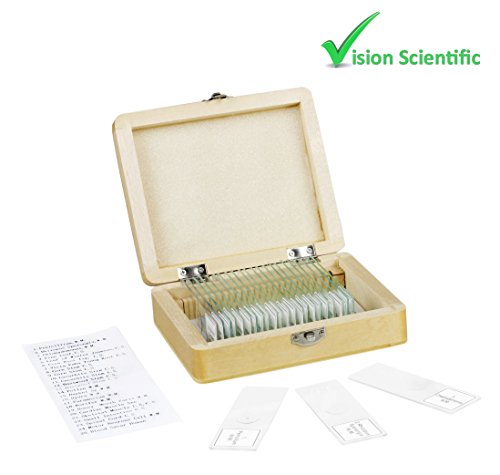 Vision Scientific VS25 Piece Slide Set, 25 Prepared Glass Microscope Slides, General Biological/Scientific Application, Shatterproof Box with Interior Padding when spending over $35