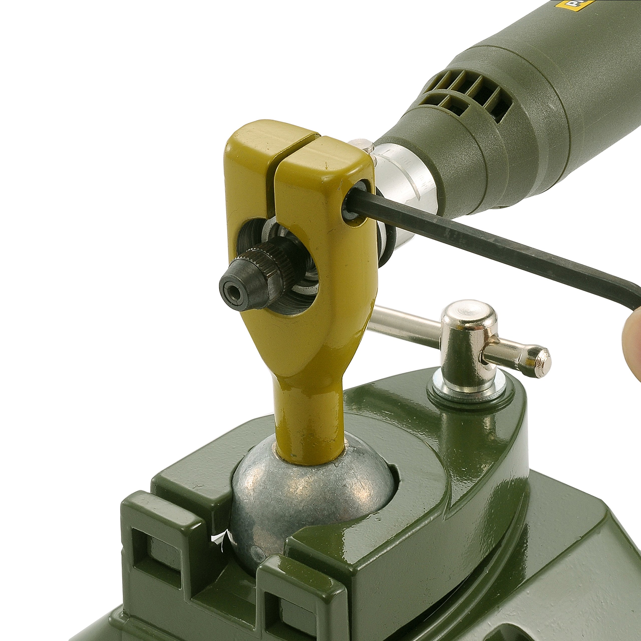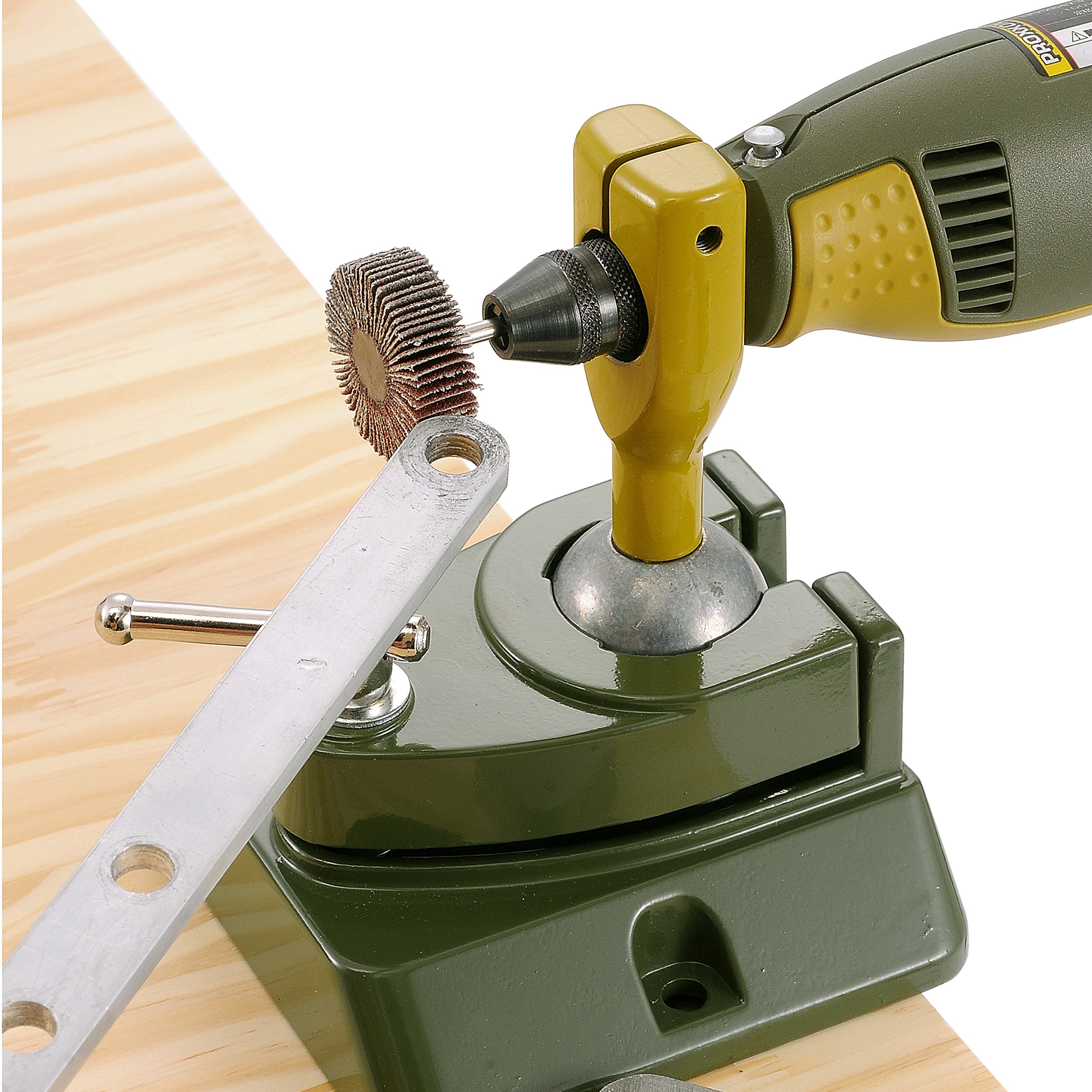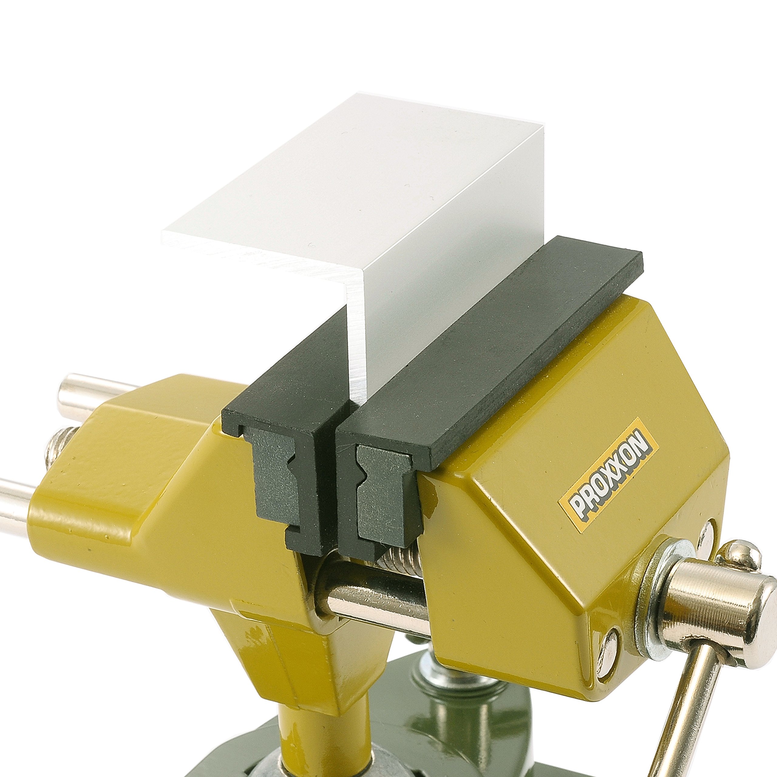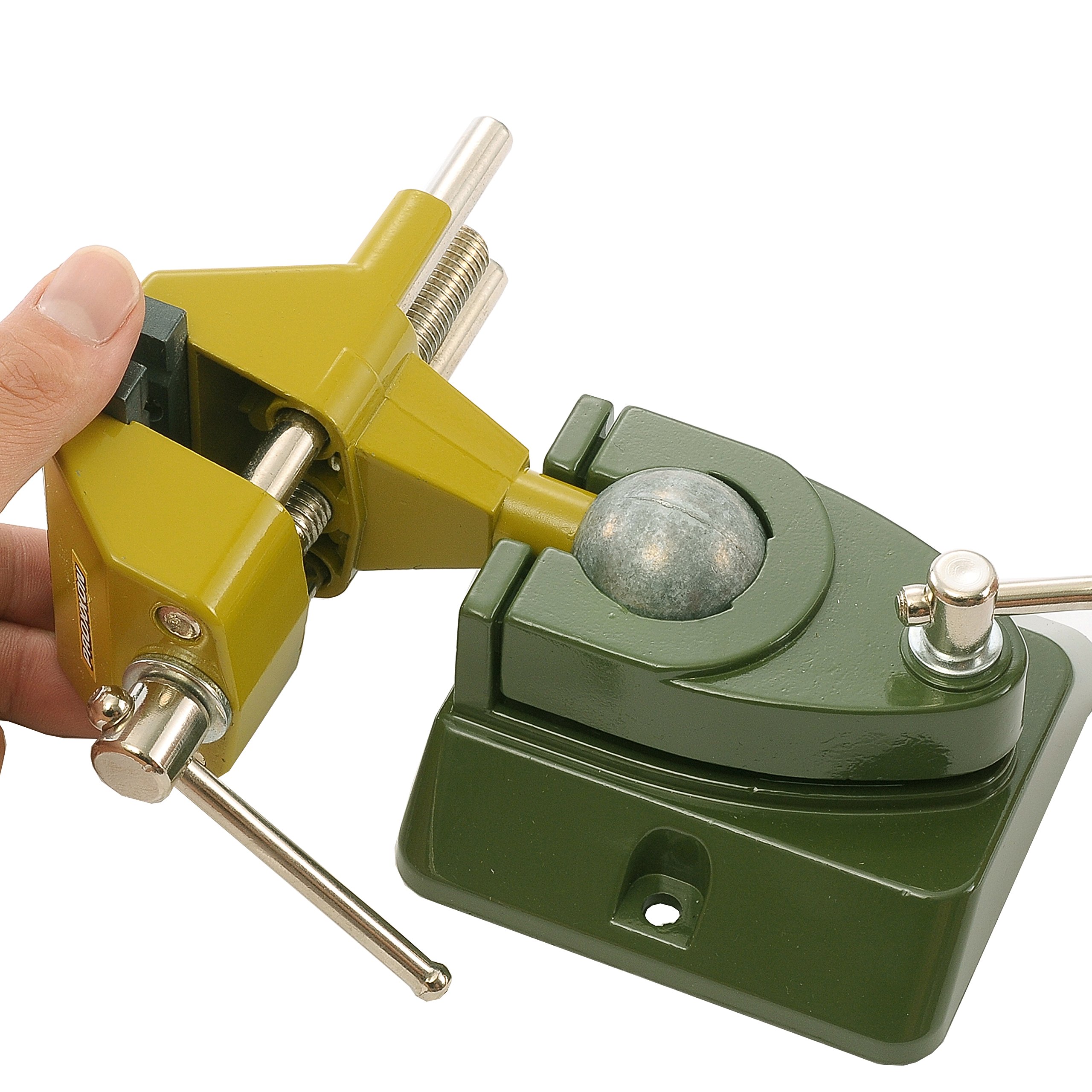 It can be attached firmly to the workbench with the attached clamp.