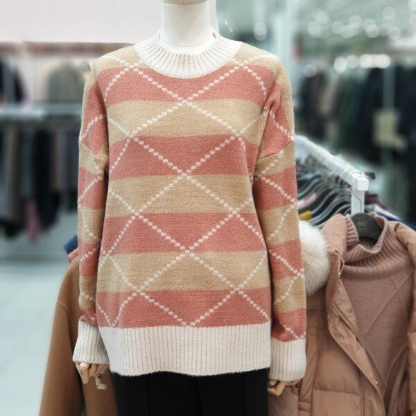 은은한 아가일 체크로 포인트감 이너나 단품코디가 예쁜 니트입니다