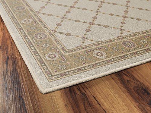 Product DescriptionBeautiful traditional design with delicate floral trellis cener makes this rug a great design for any room.0