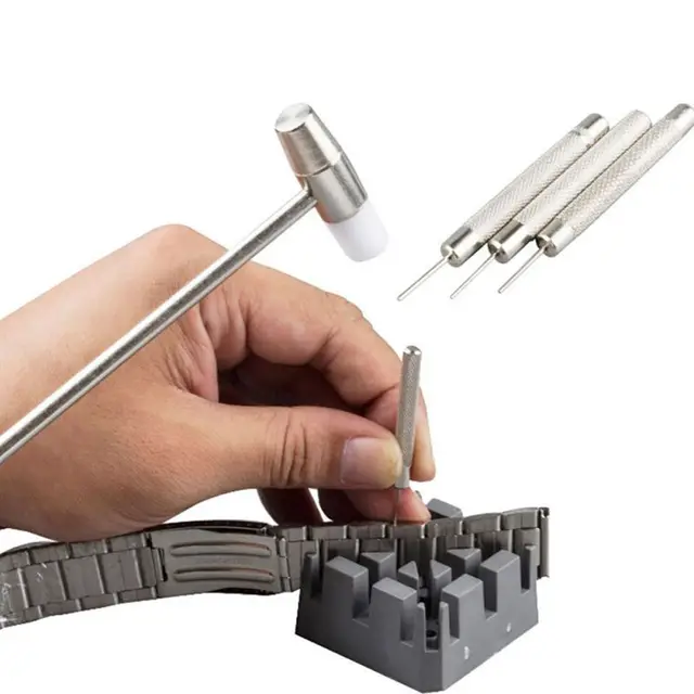 상품 내용 키트 포함, 1 망치 플라스틱 및 금속 헤드, 1 시계 홀더, 3 핀 푸셔: 0.7 싸이즈, 0.8, 및 0.9 미리메터 포장 상세