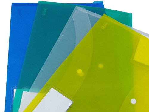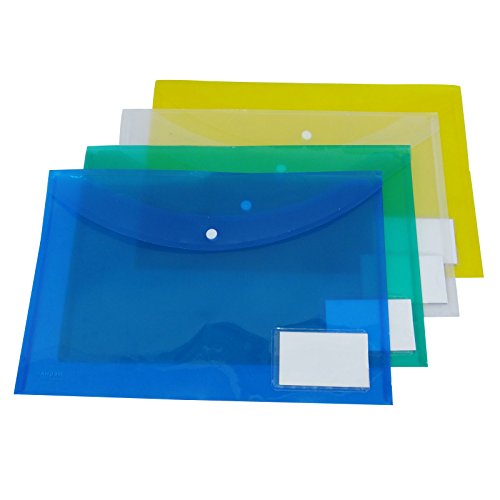 -. Feature : Pack of 4 premium quality pocket document folders / Made from durable Polypropylene / Colour: As shown in picture; Size: A4 / Press stud closing to ensure documents and kept safe and secure / Will approximately hold up to 150 sheets of paper.