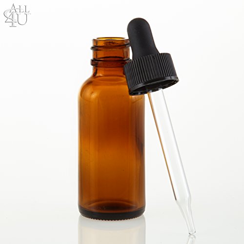 All 4 You - 1oz Amber Glass Bottles for Essential Oils with Glass Eye Dropper - Pack of 12