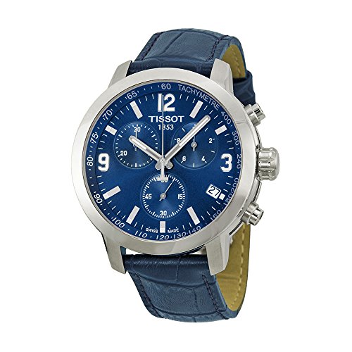 -. Title : Tissot PRC 200 Chronograph Blue Dial Blue Leather Mens Watch T0554171604700