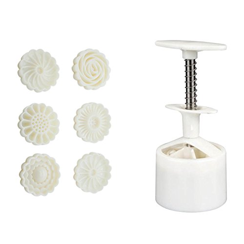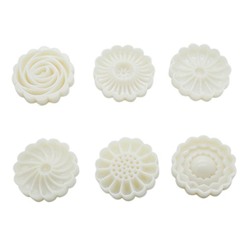 GooGou Mid-Autumn Moon Cake Mold DIY With 6 Pcs Mode Pattern For Cookie Press 50g White