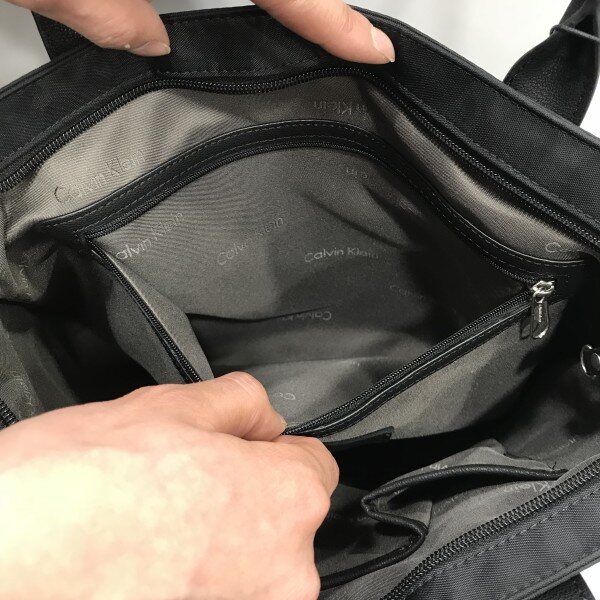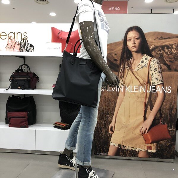 가벼운 나일론 원단 사용과 Calvin Klein 로고 포인트의 심플한 스타일