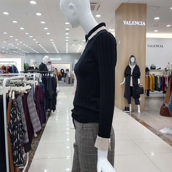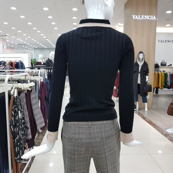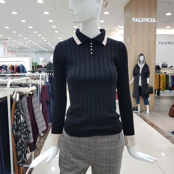타이트한 신축성좋은 카라니트.배색과진주단추가포인트입니다.