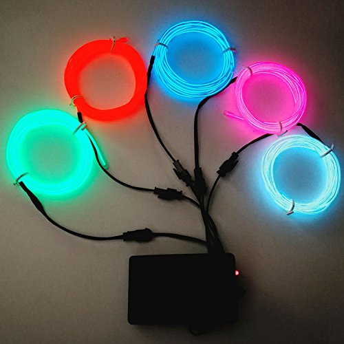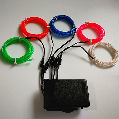 TGHCP-5x6.5FT Neon Glowing EL Wire with Battery Controller (White,Blue,Green,Pink,Red) for Cosplay Decoration