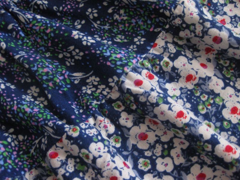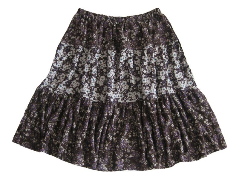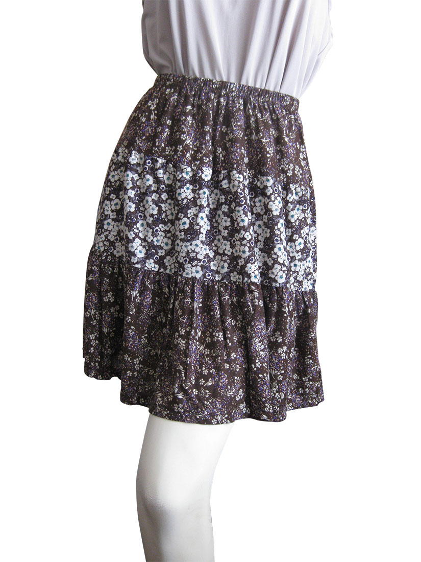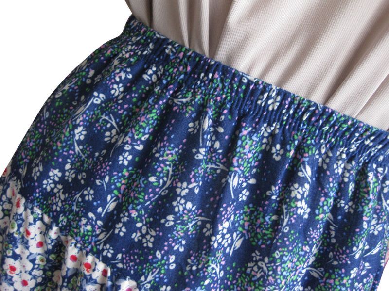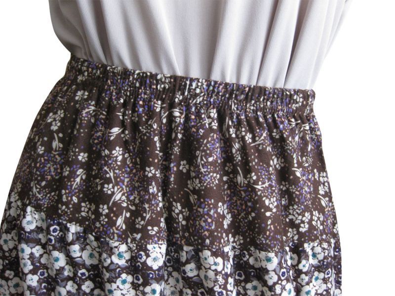 レトロフラワープリント切換えギャザースカート  Navy/Brown