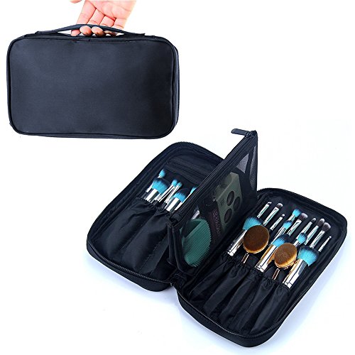 OR Pure Professional Cosmetic Makeup Brush Organizer Makeup Artist Case with Belt Strap Holder Cosmetic Makeup Bag Handbag Black