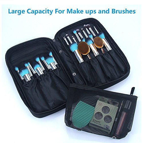The makeup brush bag/case have a removable net pocket,you can put the mascara,lipstick,eye cream etc in the net pocket.