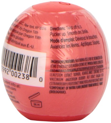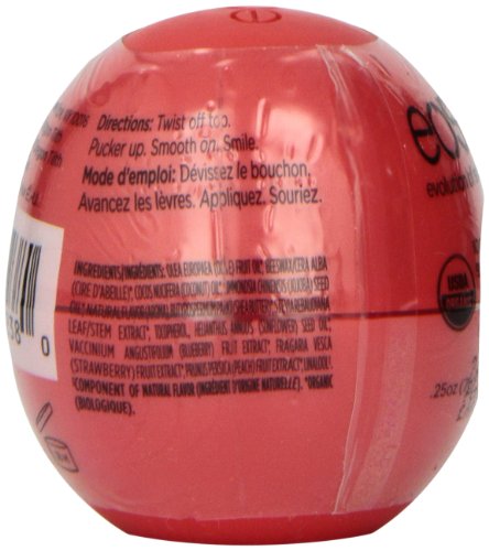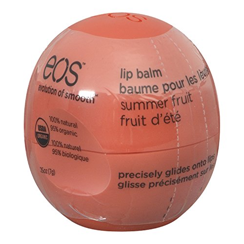 Treat your lips to an all-natural lip balm that's bursting with moisture and the refreshing fruit flavors of strawberry, blueberry, and peach. eos Summer Fruit flavored lip balm is 95% organic, 100% natural, and paraben and petrolatum free. Packed with antioxidant-rich vitamin E, soothing sheaf butter and jojoba oil, eos keeps your lips moist, soft and sensationally smooth.Feature