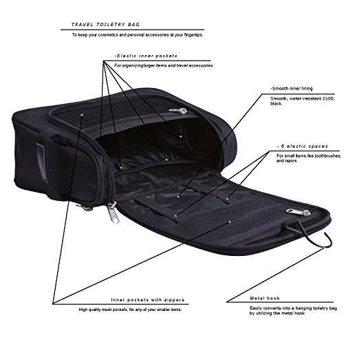 - This toiletry bag for men or women will keep cosmetics and travel accessories at your fingertips.