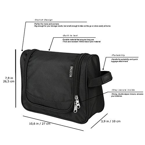 Bagsistem Travel Hanging Toiletry Bag for Men & Women, Compact Unisex Portable Toiletries Bag, Medium size, Black