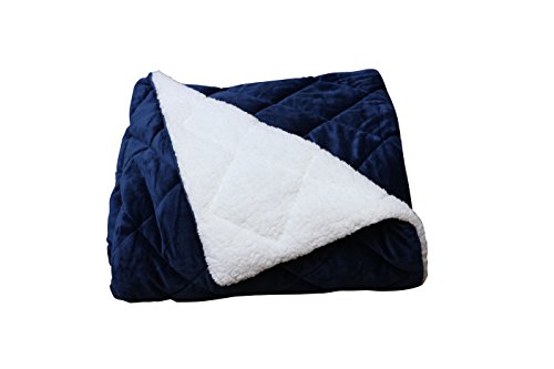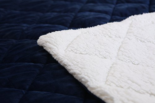 Christies Home Living Top Listing Luxury Cozy Super Soft Square Quilted Throw Blanket and Back Fleece, Navy Blue