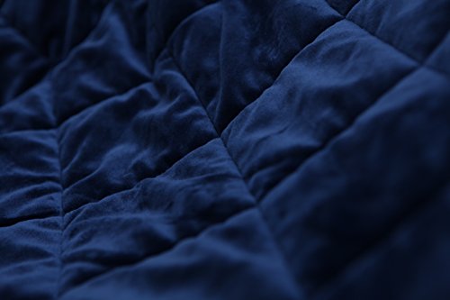 COMFORT AND STYLE – The soft interior of this plush blanket compliments the exterior quilted navy-blue fabric in a combination of comfort and style.