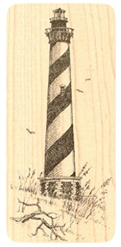 -. Title : {Single Count} Unique & Custom (2 1/2" by 5" Inches) "Beachside Lighthouse Scene" Rectangle Shaped Genuine Wood Mounted Rubber Inking Stamp