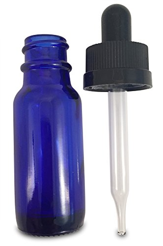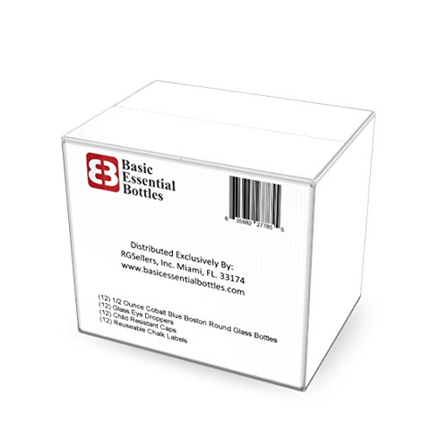 (12) 1/2 oz Empty Cobalt Blue Glass Bottles W/Glass Eye Droppers with Child Resistant Tops and (12) Chalk Labels for Essential Oils, Aromatherapy