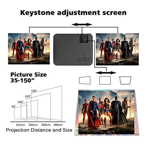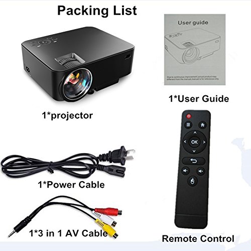 Best Home Theater Mini Projector For The Buck Under $90, Straddling the line between affordability and image quality. 1500 lumen brightness, 800x480P Native resolution (supported 1080P video decoding), Image size 32-150 Inches (Recommend Best Projection Size: 120-inches from 8 feet).