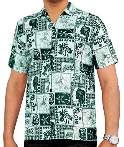 -. Title : La Leela Men's Aloha Hawaiian Shirt Short Sleeve Button Down Casual Beach Party Green
