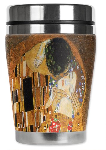 Mugzie Klimt The Kiss "Mini" Travel Mug with Insulated Wetsuit Cover, 12 oz, Black