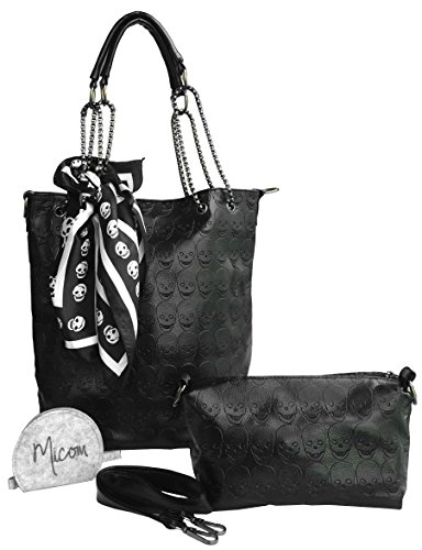 -. Binding : Apparel -. Brand : MICOM -. Color : Black -. Department : womens -. EAN : 0624907105295 -. Feature : Material: Pu leather (Faux Leather) / Vintage gothic skull design with scarves; Chain strap; Metal feet protectors on bottom / 3 in 1:1 shoulder bag,1 small insert bag; 1 Micom zipper pouch / Approximate Dimensions: 10.2"X12.9"X7.08"(L*H*W) / For the material is faux leather, so it has leather odor is normal. Putting it in well-ventilated areas for few days, the odor will disappear -. Model : HB-05695 -. MPN : HB-05695 -. PackageQuantity : 1 -. PartNumber : HB-05695 -. ProductGroup : Shoes -. ProductTypeName : HANDBAG -. Size : One Size -. Title : Micom Womens Skull Print Faux Leather Hobo Tote Shoulder Bag Lash Package Handbag with Micom Zipper Pouch -. UPC : 624907105295