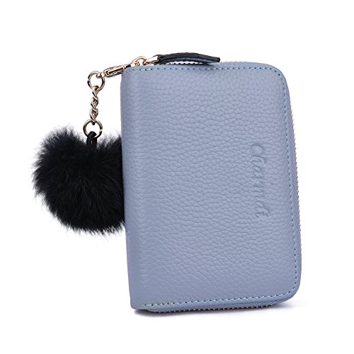 -. Title : Charmdi 二つ折財布 小銭入れ レディース本革 大容量 携帯毛玉 (ブルー)