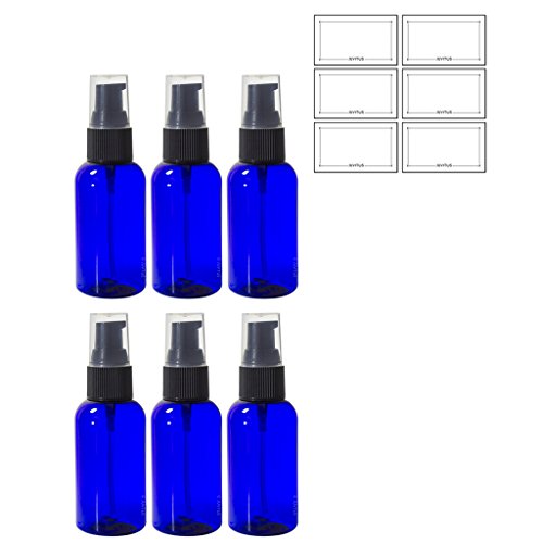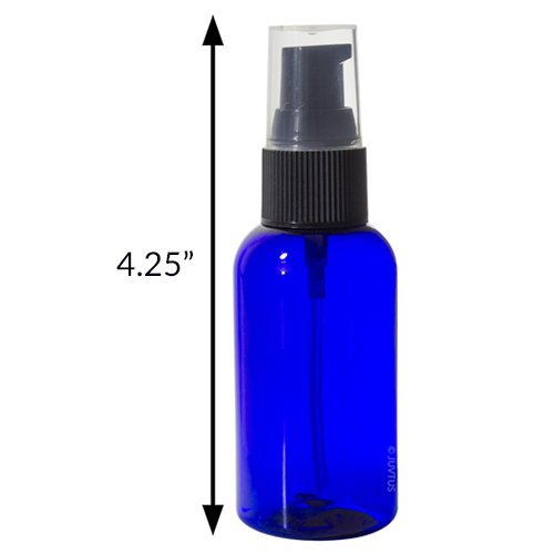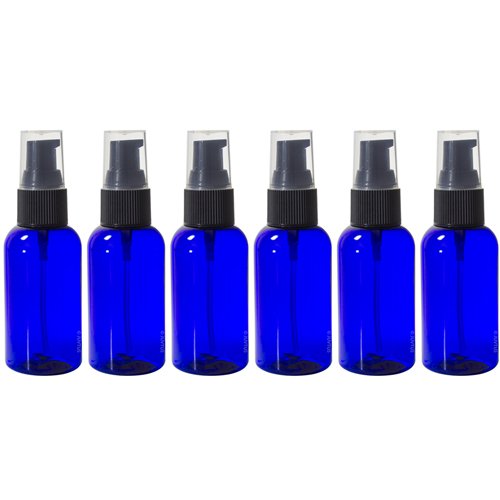Cobalt Blue 2 oz Boston Round PET Bottles (BPA Free) with Treatment Pump (6 Pack) + Labels