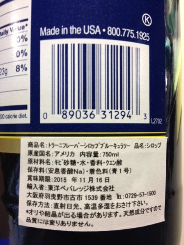 Torani Blue Curacao Syrup, 750 ml Bottle