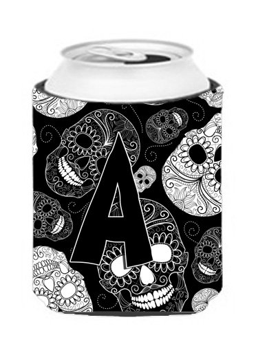 Letter A Day of the Dead Skulls Black Can or Bottle Hugger CJ2008-ACC
