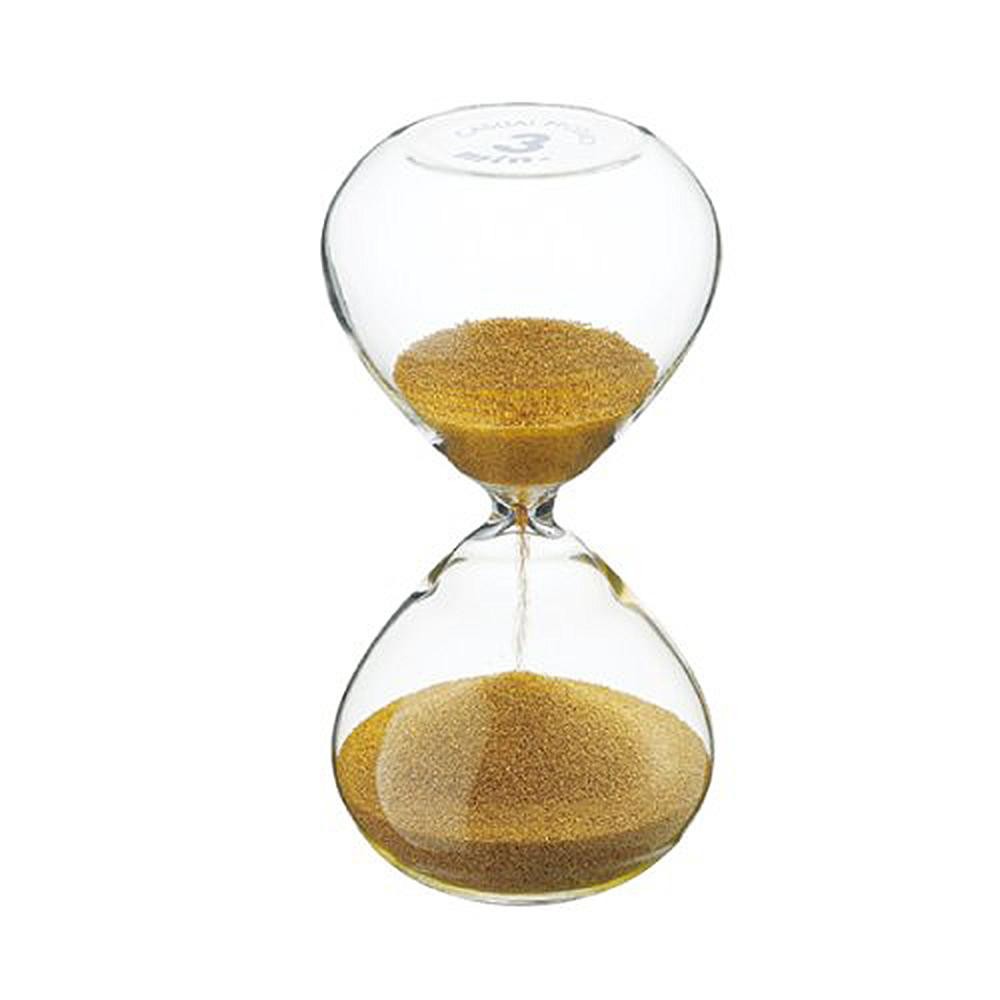 枠のないシンプルな形でありながら、ガラスの透明感と繊細さが際立つサンドグラスです。金メッキが施された砂の落ち着いた輝きが、3分間のゆったりとした時間を演出してくれます。 |