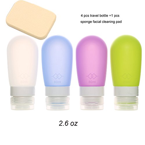 Silicone Portable Travel Bottle Set, 4 Pieces Leak Proof Squeeze Bottle Cosmetic Container for Shampoo Bath Cream Toner Lotion With a Free Sponge Face...