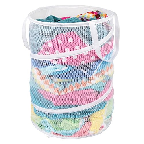 FOLDS FLAT FOR COMPACT STORAGE: This Mesh Pop-Up Collapsible Laundry Clothes Hamper pops up and stays open, folding flat when not in use for compact storage - Perfect for dorm room or small apartment living!