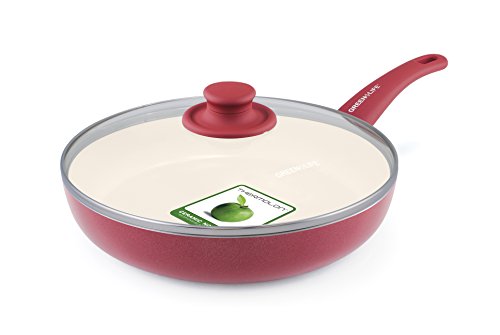 GreenLife 14 Piece Nonstick Ceramic Cookware Set with Soft Grip, Red
