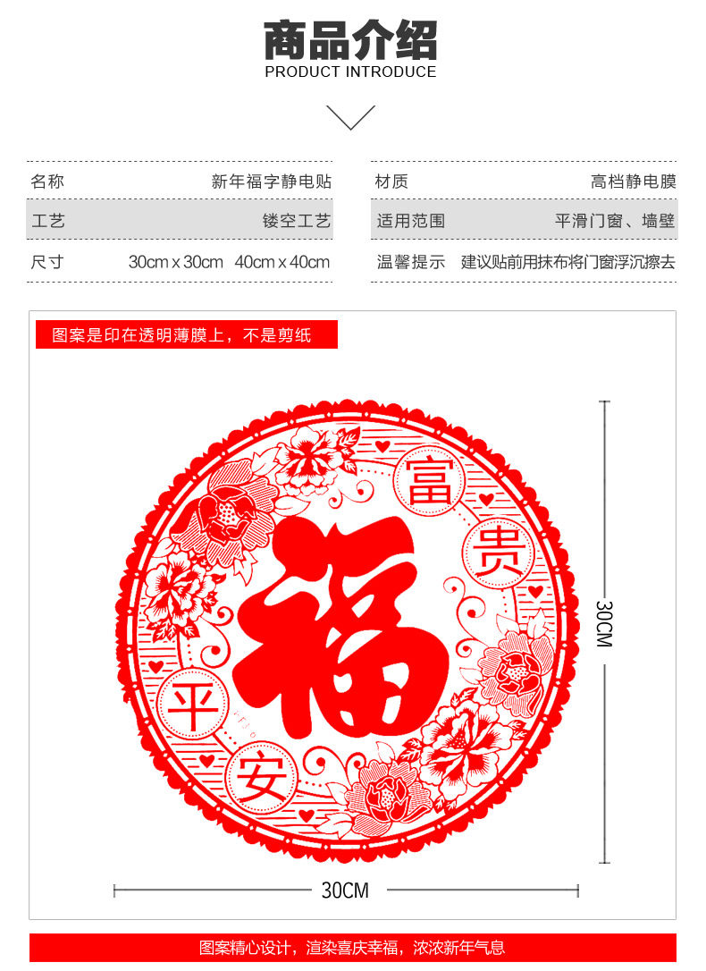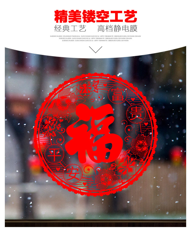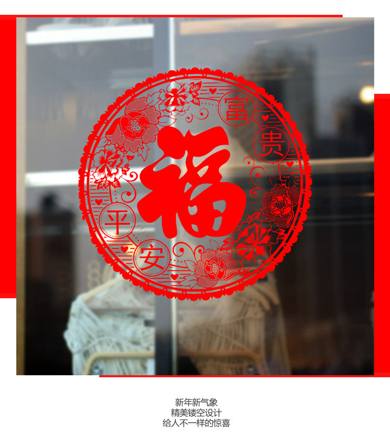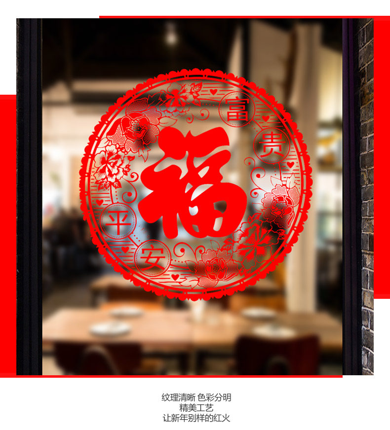 新年春节装饰品静电贴富贵平安玻璃贴橱窗贴画商城店铺窗花
