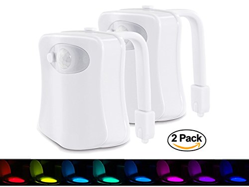 REFAGO Toilet Night Light Toilet Light Bowl 8-Color Changes, Sensor LED Bathroom Night Light 2 Pack