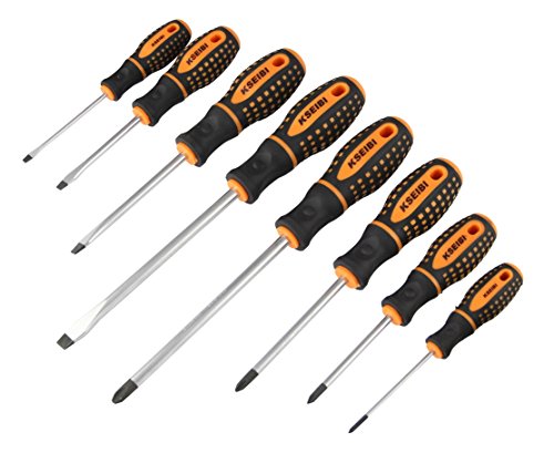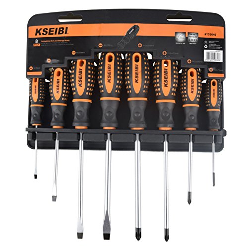 KSEIBI 153640 Slotted and Phillips Screwdriver Set with Storage Rack 8 Piece Organized Screwdriver Kit