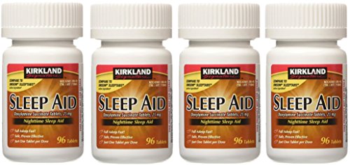 -. Binding : Kitchen -. Brand : Kirkland Signature -. EAN : 0096619262670 -. Feature : Kirkland Sleep Aid Doxylamine Succinate 25 Mg / Compare to the active ingredient in Unisom / Fall asleep fast,Safe and effective / 1 Tablet per dose / Each order has 4 bottles, each with 96 tablets -. PackageQuantity : 4 -. ProductGroup : Home -. ProductTypeName : HOME -. Title : Kirkland Signature bkjvSJ Sleep Aid Doxylamine Succinate 25 Mg, 96 Tablets (4 Pack) -. UPC : 096619262670