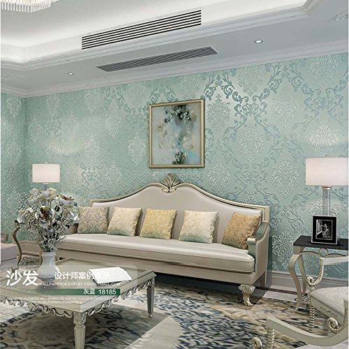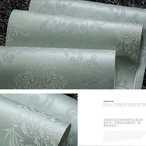 QIHANG European Style Luxury 3D Damask Pearl Powder Non-woven Wallpaper Roll Blue&gray Color 0.53m10m=5.3㎡