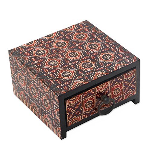 NOVICA Wood batik jewelry box, Ceplok Wonosari I