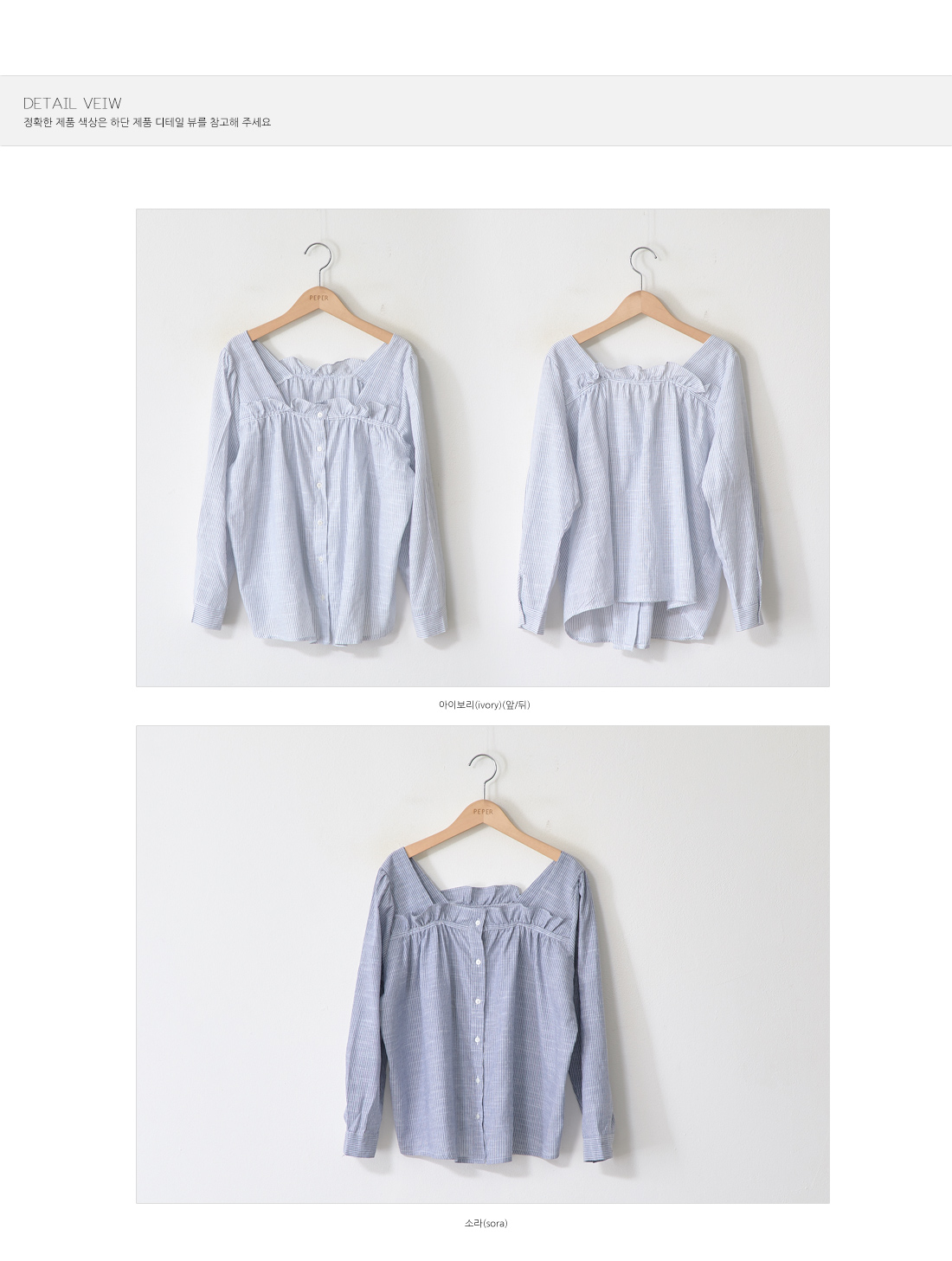 컬러는 아이보리,소라 2color로 구성되어 있으며, 모델의 착용 컬러는 아이보리 입니다.
