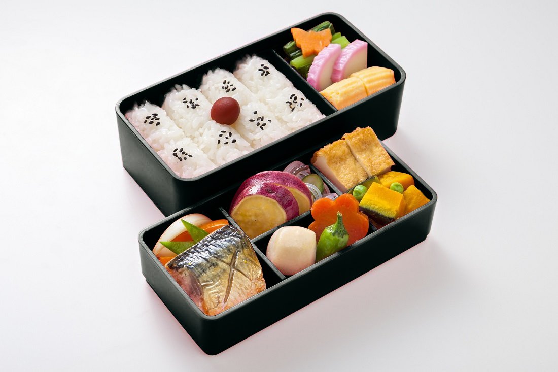 Japanese Traditional Rabbit Blossom Bento Box Set - Square 2 Tier Bento Box Rice Ball Press Bento Bag (Blue)