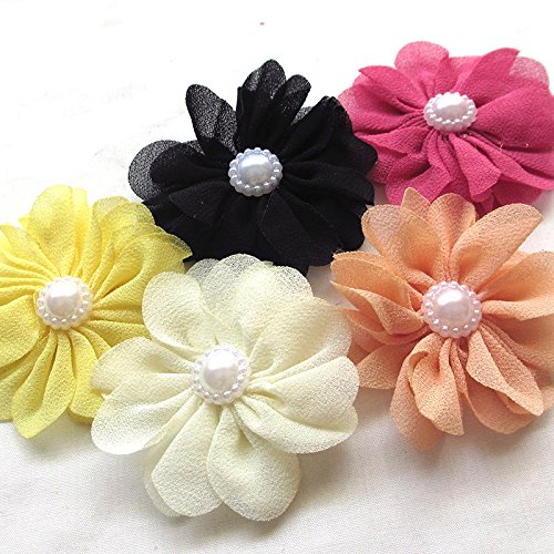 25pcs Fabric Ribbon Flowers Bows Rhinestone Appliques Craft Bulk A445 (Multi-color)
