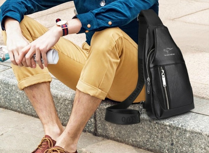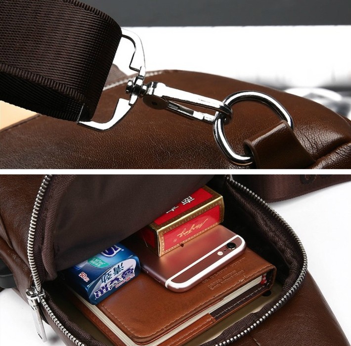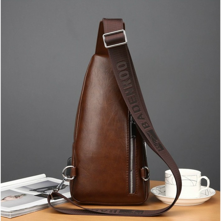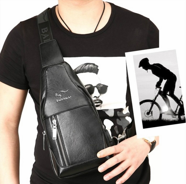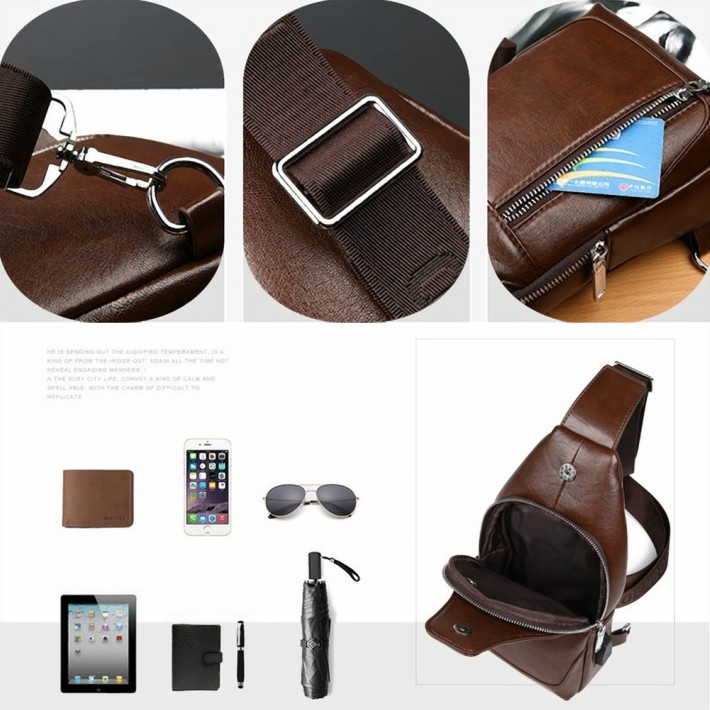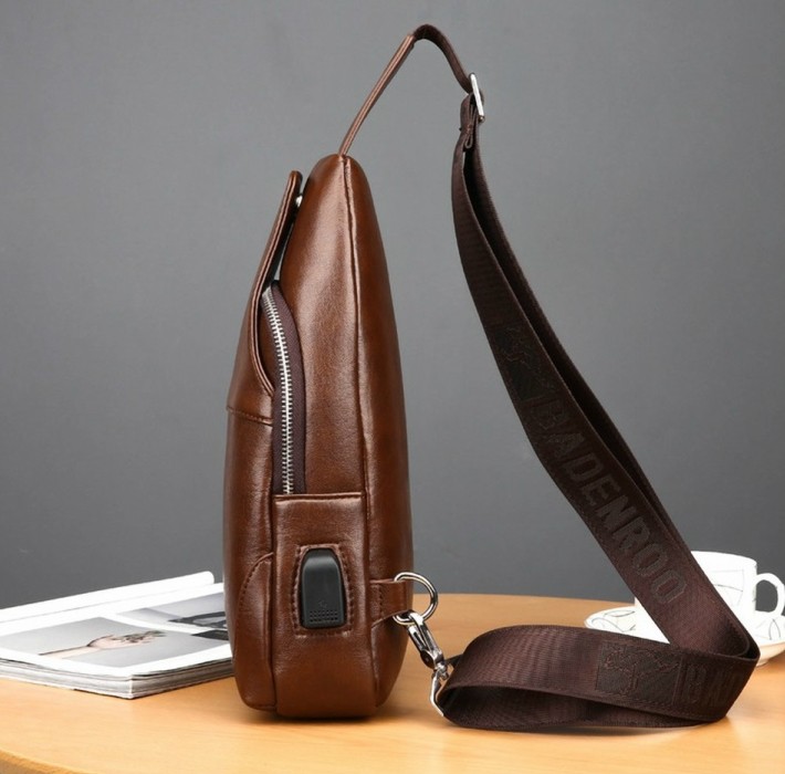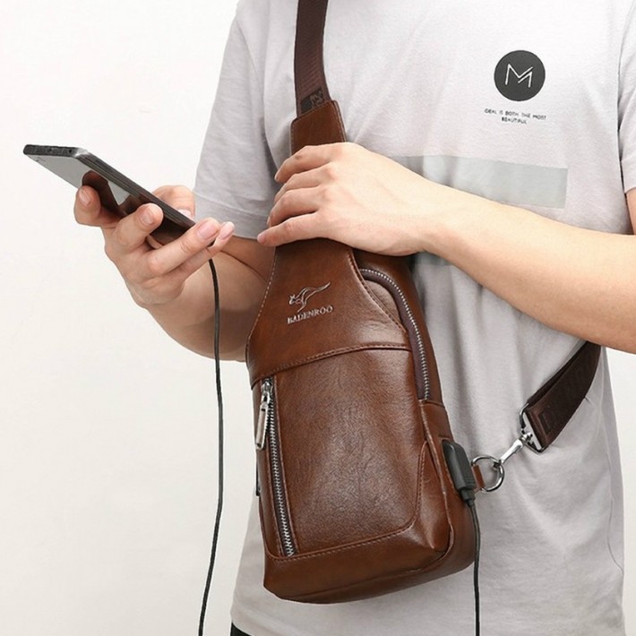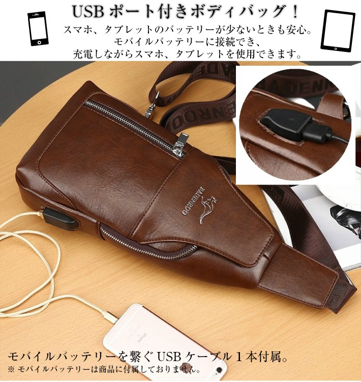 高品質なPUレザーを使用した、USBポート付きボディバッグです。