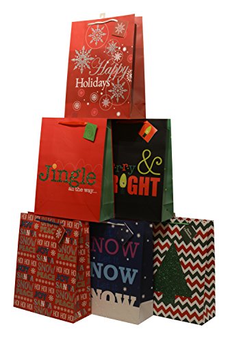Product Description These attractive bags come in 6 beautiful and festive Christmas designs. They are really big for your larger gifts. The beautiful glitter accents will brighten up the holidays! 0