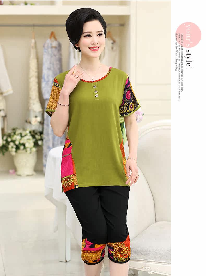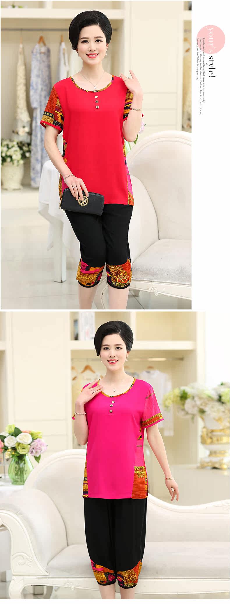 中年女装夏装套装50-60岁妈妈装夏季新品中老年女装夏装短袖套装