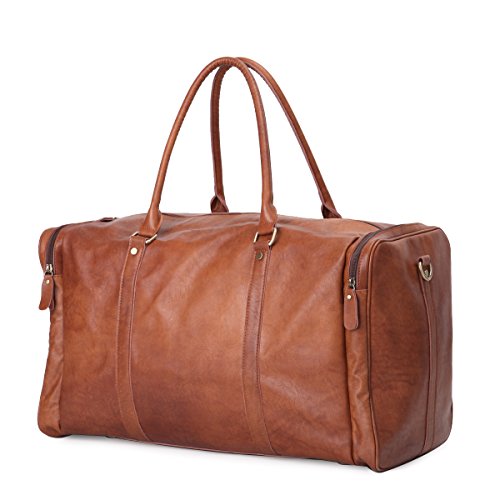 -. Title : Leathario mens will leather duffle lage weekend overnight shoulder messenger bag