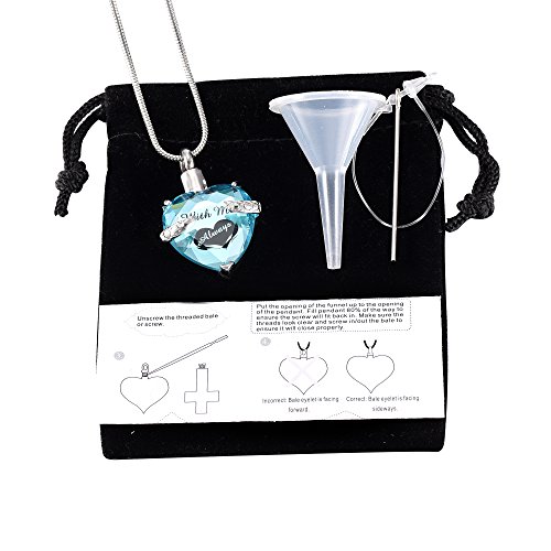 With Me Always laser Engraved Cremation Urn Necklace for ashes is a fantastic way to keep your loving one near your heart forever. This wearable urn has a secure screw top opening you can use to hold cremation ash, dried flowers or other tiny memories.Measurements: 1 1/4 inch tall with screw top bail, 7/8 wide and 1/4 inch deep.