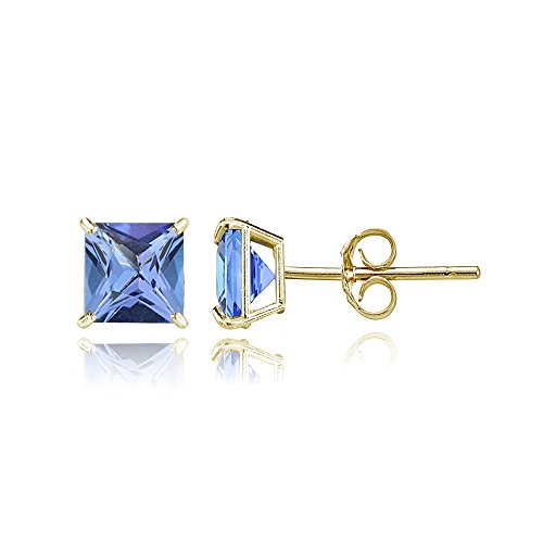 -. Title : Bria Lou 14k White or Yellow Gold Genuine Natural Gemstone 5mm Square-Cut Solitaire Stud Earrings (Choice of Gems)